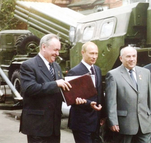 «– Активный очень человек сам по жизни. Вот я сколько выставок проводил международных, он, как правило, участник этих выставок, активно выступает, пропагандирует. Тесный контакт держит с Министерством обороны, со штабом ракетных войск и артиллерии. Он внимательно вслушивается в те замечания, которые высказывают солдаты, офицер, который работает на этом вооружении. Он находил возможность из собственных средств – без гособоронзаказа разработал пять новых ракет различных для «Смерча» и их приняли на вооружение».