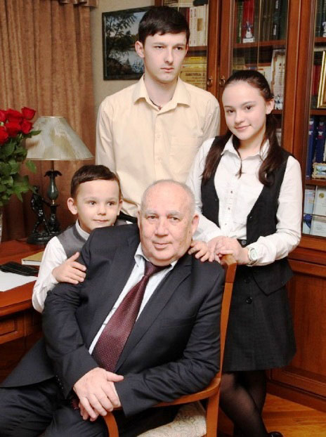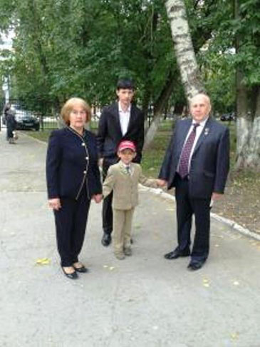 (Слева направо) – супруга Виктория Ивановна, внук Андрей (на заднем плане), внук Макар (на переднем плане), и Николай Александрович.