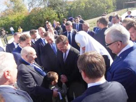 Премьер-министр России Дмитрий Анатольевич Медведев пожимает ручку внуку Николая Александровича Макаровца – Макару.