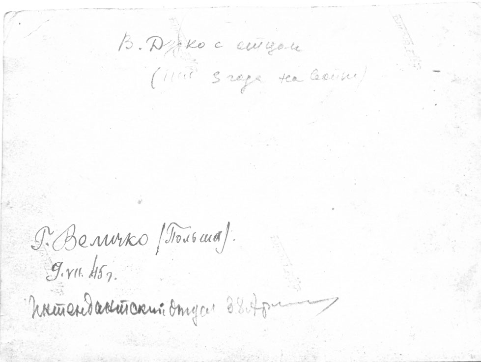 На обратной стороне фотографии сделана надпись отцом Виктора: 9.07.45 года.
