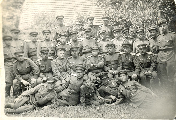 Сохранилась фотография, на которой запечатлены офицеры, которые воевали с отцом. На переднем плане – сам «Батя» и я.