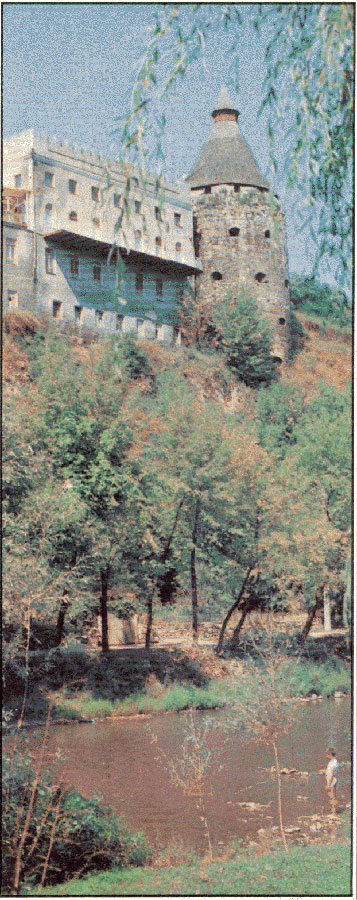 Если смотреть на крутой противоположный берег, внимание привлекал ресторан, который почти что висел над обрывом, (а тогда это была полуразрушенная башня).
