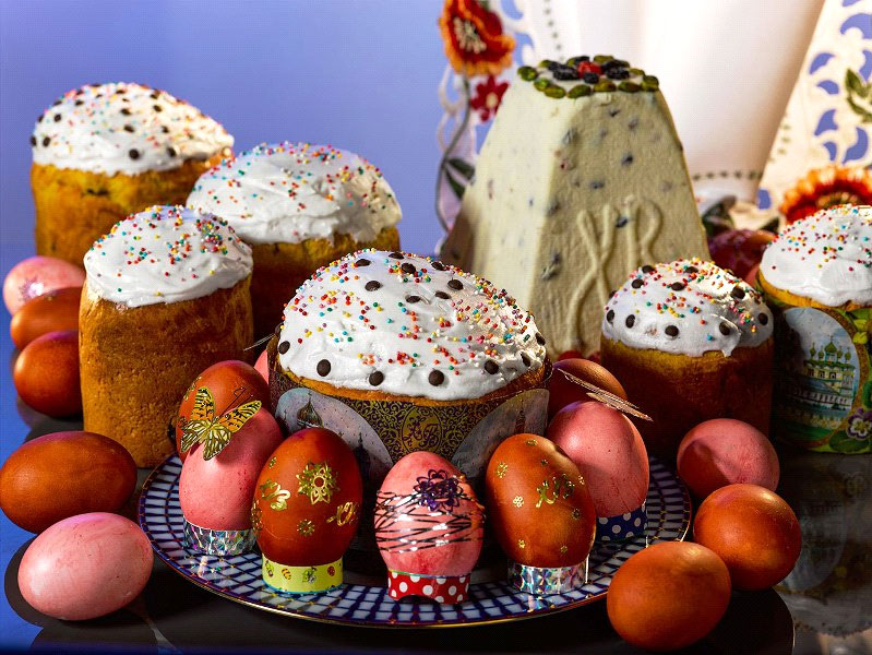 В этом году мы всей семьёй сидели за настоящим пасхальным столом: были и куличи и пасха, и пироги, и, наверное, ещё что-то вкусное, хотя с продуктами было туговато.
