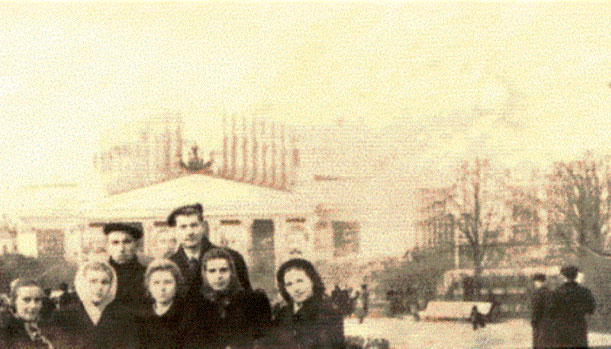 У меня не осталось фотографий, на которых был бы – Толя Тарасов. Он был организатором всех наших поездок в Москву. Вот и на этой фотографии – группа однокурсников, которую он сопровождал в Москву на какую-то экскурсию.