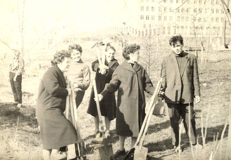На фотографии – Виктор с сотрудниками на субботнике – сажают деревья на пустыре, где в последствии будет парк