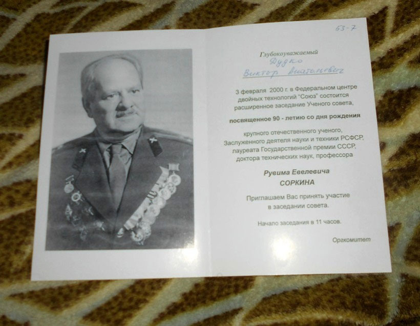 Все фотографии в тексте взяты из личного архива В. А. Дудко и из книги – «О ЖИЗНИ И НАУЧНОЙ ДЕЯТЕЛЬНОСТИ Р. Е. СОРКИНА», принадлежащей В. А. Дудко. В книгу вошли фотографии из личного архива В. А. и текст с воспоминанием о Р. Е. Соркине.