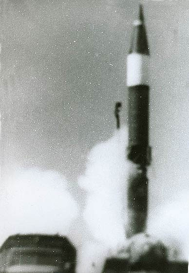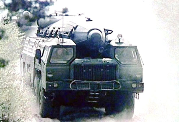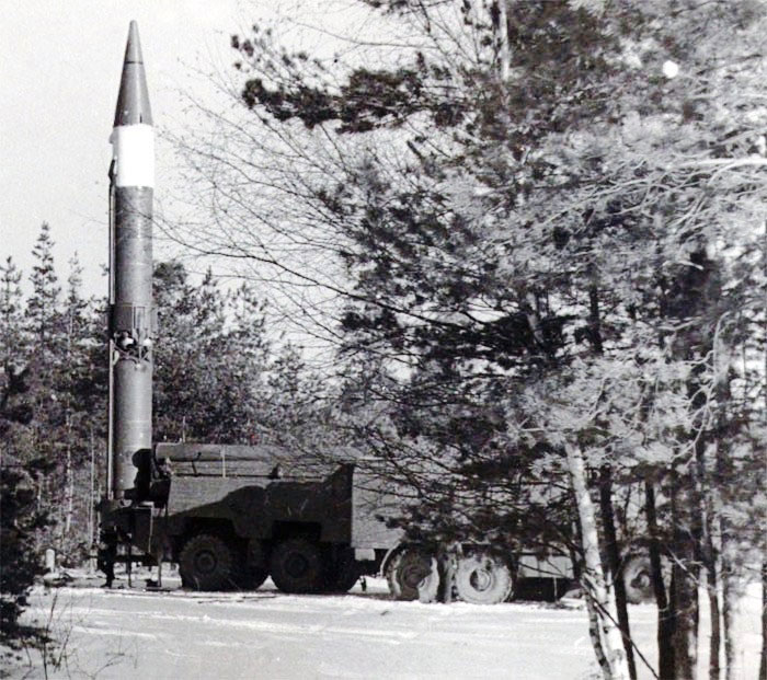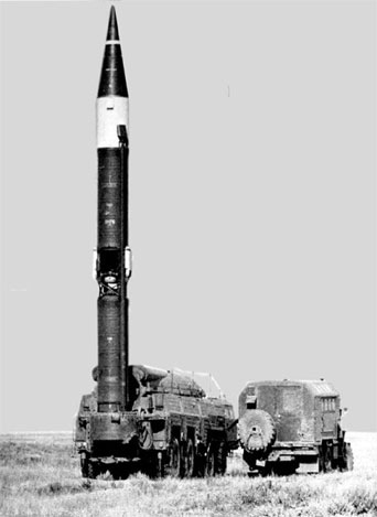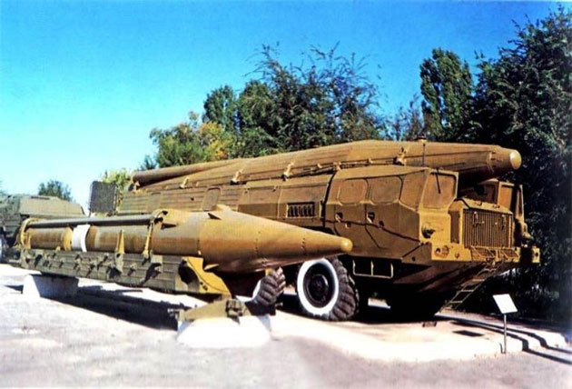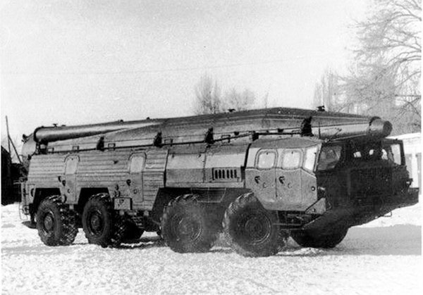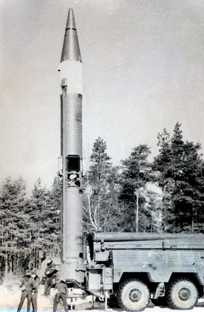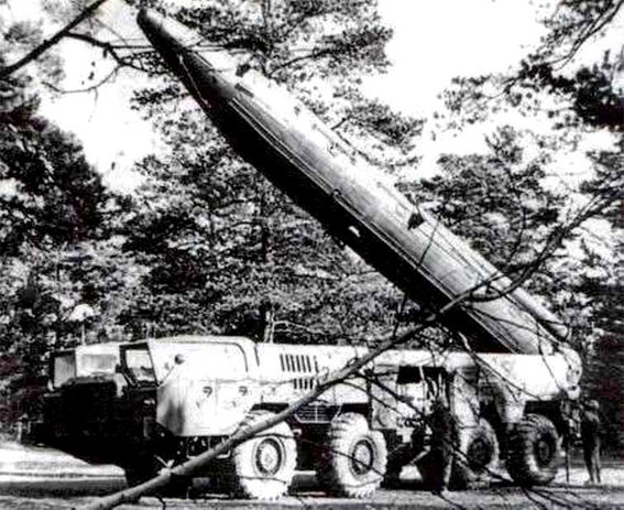 Пуск ракеты 9М76Б1 – вероятно эта ракета является SS-12B / SS-12M / SS-22 (рядом с СПУ стоит машина МИП, фото с сайта http://9k72.ru/)