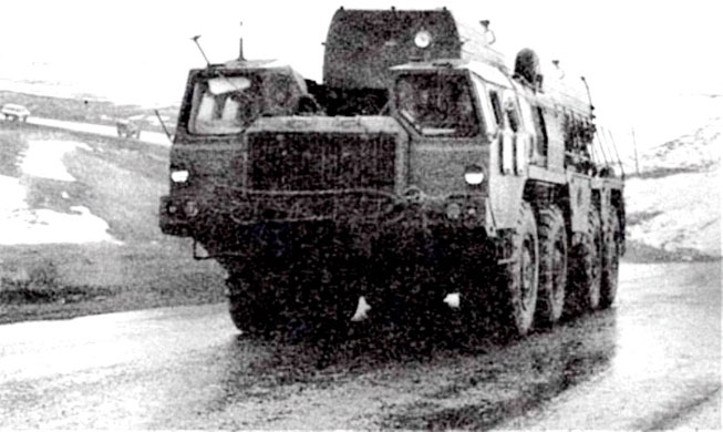 СПУ 9П120 комплекса 9К76 «Темп-С» 122-й ракетной бригады на марше (фото с сайта http://9k72.ru/)