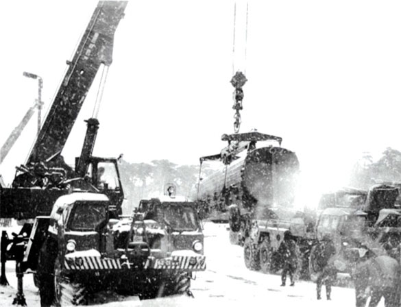 Кран 9Т35 комплекса «Темп-С» на территории 1168 ОРДН (в/ч 64468), п. Пашино Новосибирской области, весна 1988 г. (фото из архива Aml, http://militaryrussia.ru/forum/)