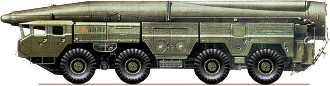 СПУ 9П120 комплекса 9К76 «Темп-С» (камуфляж – СССР, 1985 г.). Рисунок из книги Zaloga Steven J., The SCUD and other Russian Ballistic Missile Vehicles. Concord Publication,