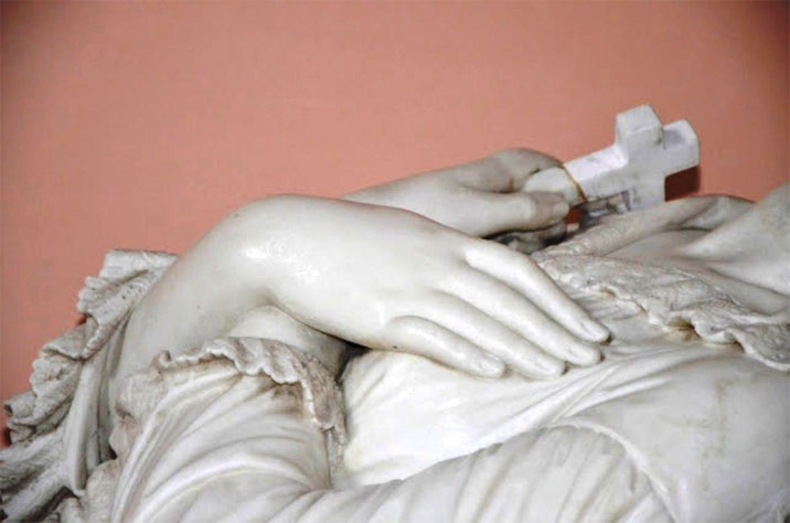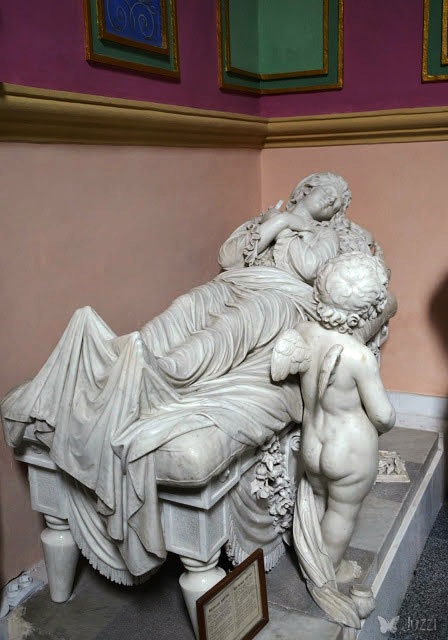Лауре был 21 год, когда она умерла. Памятник весит около четырёх тонн. Кажется невероятным, как удалось скульптору создать такое неземное, и вот же время – реалистичное произведение. Глядя на неё, глаза понимают, что она не живая, но взирая на неё умом и сердцем, тебе начинает казаться, что она сейчас вздохнёт…