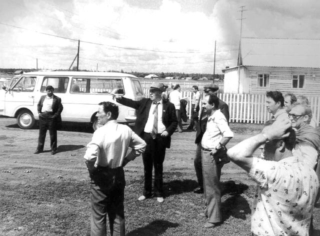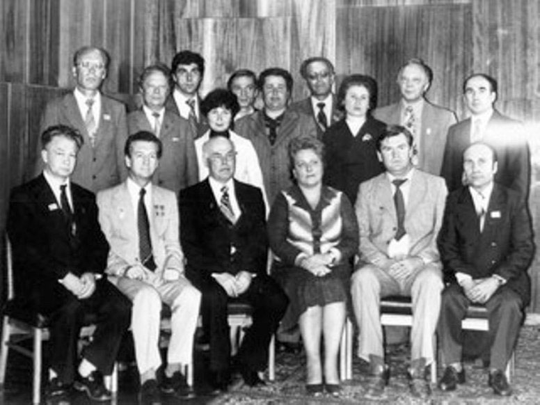 На фото: группа руководящих товарищей и сотрудников НПО «Алтай». Слева направо сидят: генеральный директор НПО «Алтай» Я. Ф. Савченко, председатель крайисполкома В. Т. Мищенко, зам. зав. отделом ЦК В. Н. Демченко, министр В. В. Бахирев, зам. министра Л. В. Забелин; стоят: председатель горисполкома Ю. Г. Капралов, 1-й секретарь горкома КПСС А. И. Власов, 2-й секретарь горкома КПСС Н. В. Дроздов, 1-й заместитель генерального директора НПО Г. В. Сакович, нач. отдела Б. И. Ворожцов, зам. министра В. И. Николаев, секретарь парткома НПО А. И. Трунов, зав. отделом крайкома С. Н. Ядонист, главный конструктор СКБ А. А. Нерченко, зам. министра П. Г. Фатеев, генеральный директор НПО «Сплав», начальник ОКС Министерства В. И. Тимофеев, нач. отдела 4 ГУ министерства Ю. М. Климов, 1-й секретарь райкома г. Бийска Б. П. Орлов, зам. генерального директора НПО «Алтай» Н. А. Макаровец