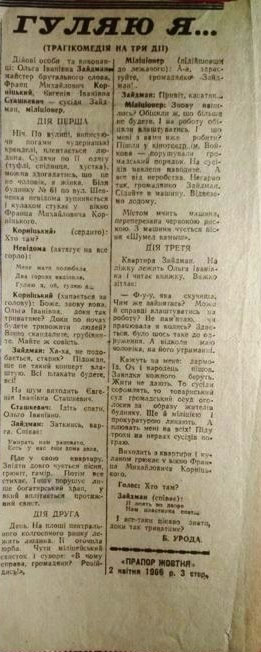 Б. УРОДА.«ПРАПОР ЖОВТНЯ» 2 квiтня 1966 р. 3 стр.Смотри ка! Перевела легко. Неужели несколько лет, проведённых в детстве в Киеве, оставили в памяти разговорные слова украинского языка?