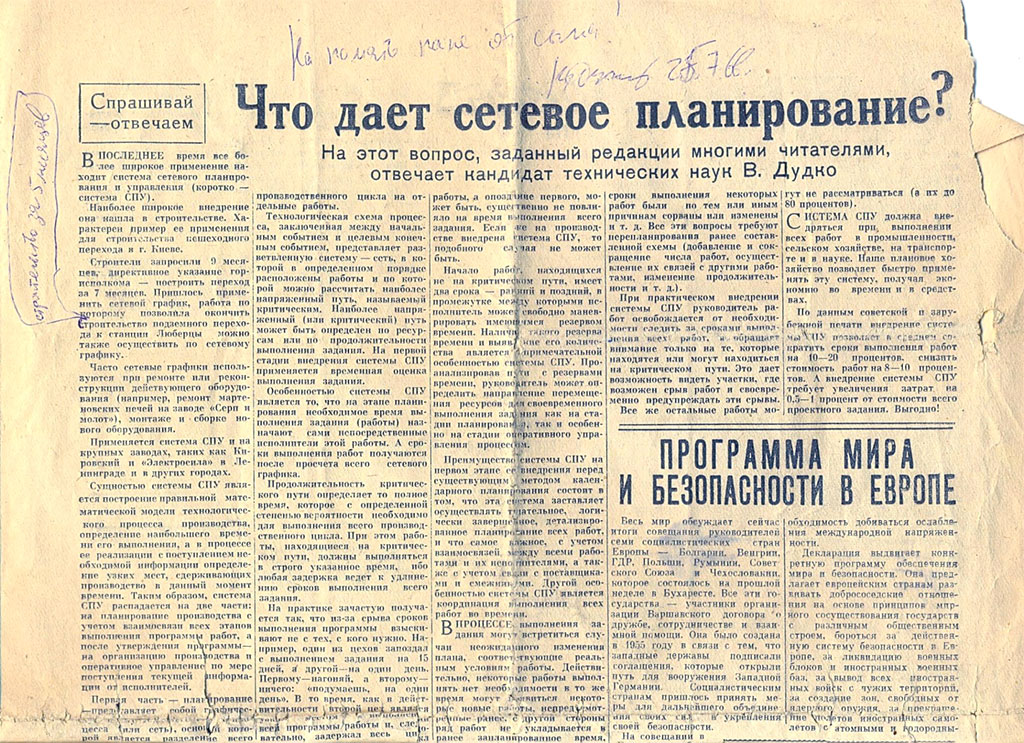 Так, например, мне пришлось написать в Люберецкую ПРАВДУ статью в раздел – «Спрашивай – отвечаем» – «ЧТО ДАЁТ СЕТЕВОЕ ПЛАНИРОВАНИЕ?».