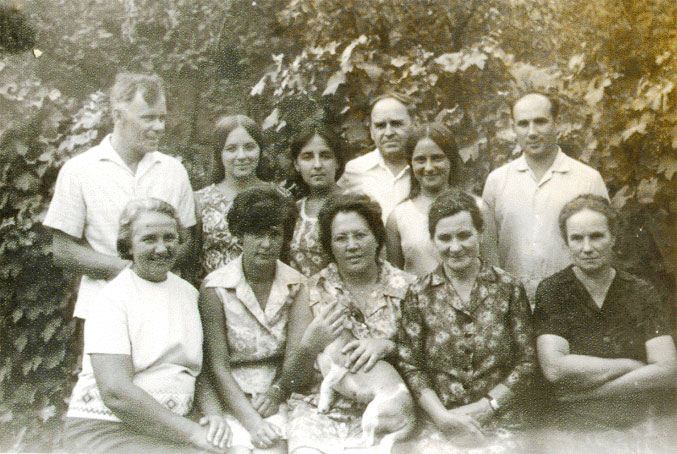 В нижнем ряду – тётя Таня (жена Петра Евстафьевича), Вика макаровец, Ираида Дудко и кто-то ещё двое, я не помню кто они.