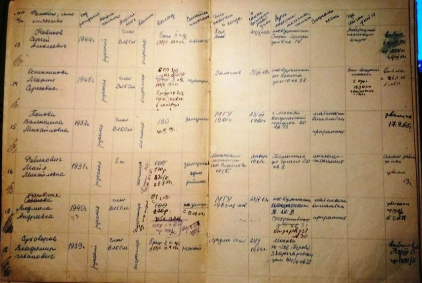 1937 г. р., русская, член Влксм, инженер, 130 р., в лаб. 30. III.63 г., замужем, МГУ 1960 г., в лаб. с 29 / VIII 1960 г., математик – вычислитель, программист,