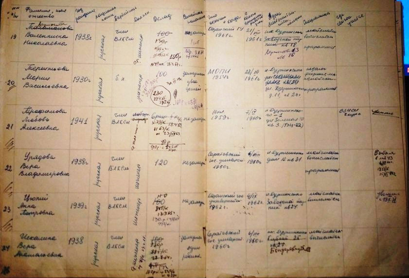 1938 г., русская, член Влксм, инженер, 120 р. не замужем, Саратовский Гос. Униврситет. В 1960 г., в лаб. с 06. 08. 1960 г., математик – вычислитель.