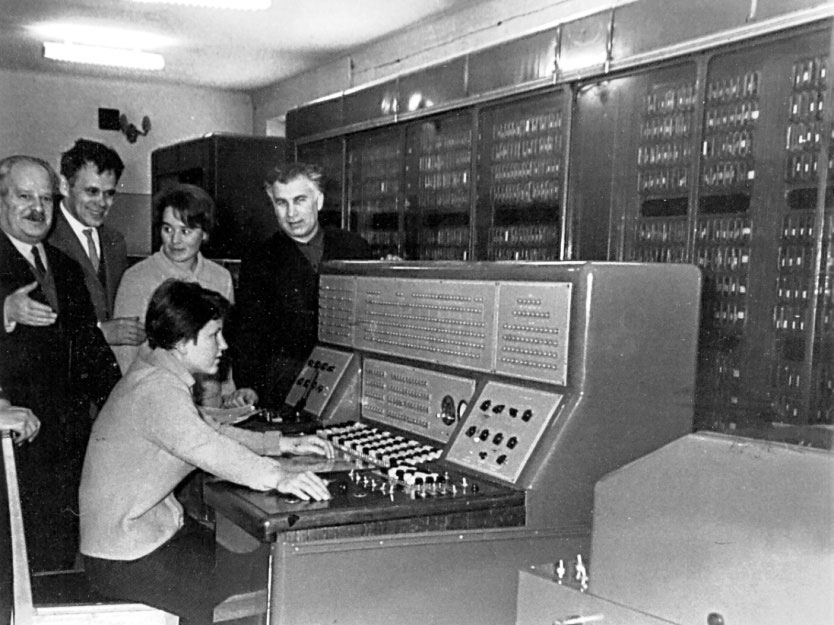 Если я не ошибаюсь на очень памятной мне и Виктору фотографии, там где – Соркин Р. Е., Виктор Дудко, Калерия Быкова и В. Н. Фоменко, за пультом ЭВМ сидит Верочка Урядова.