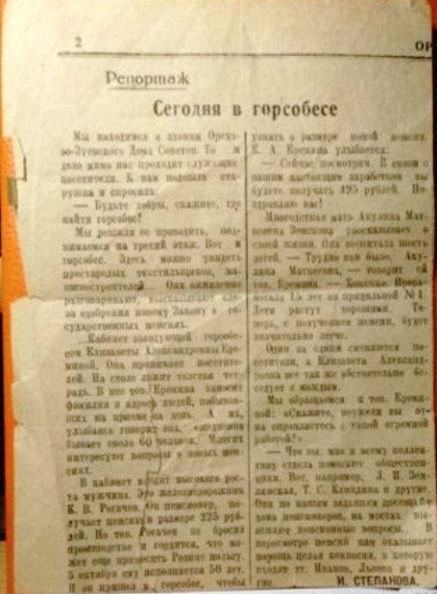 Мы находимся в здании Орехово-Зуевского Дома Советов. То и дело мимо нас проходят служащие и посетители. К нам подошла старушка и спросила: – Будте добры, скажите, где найти горсобес?