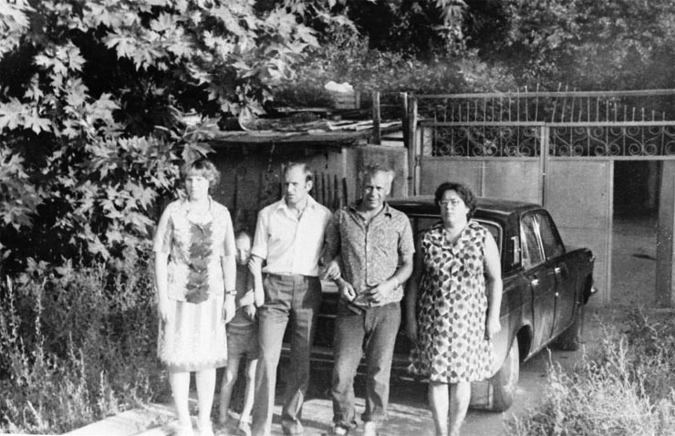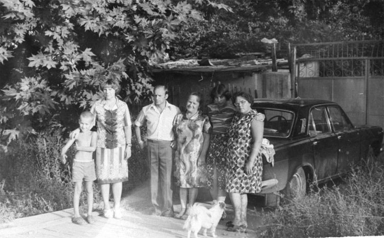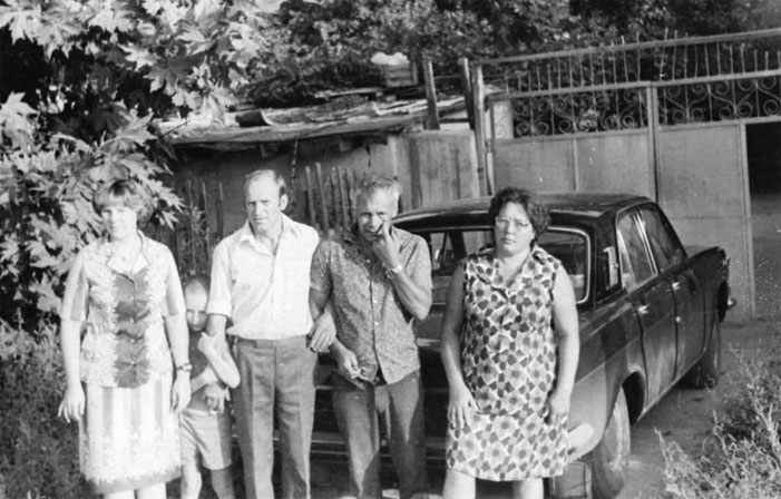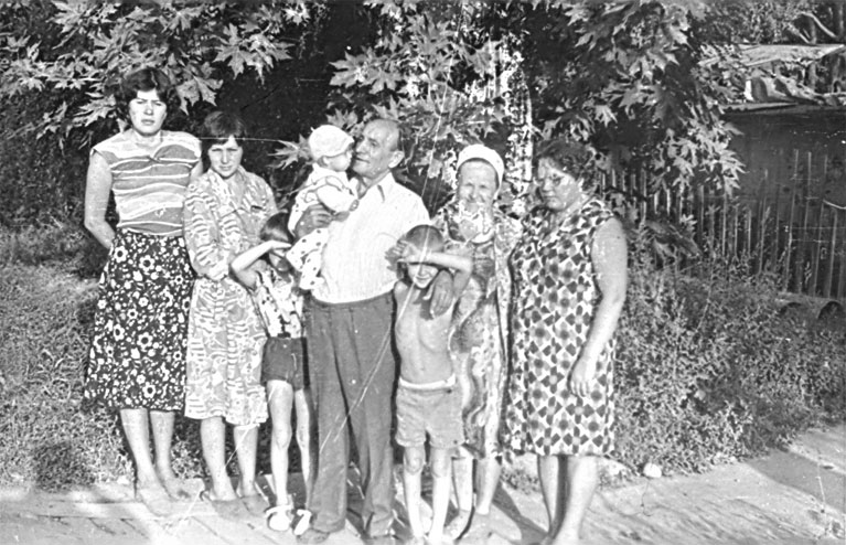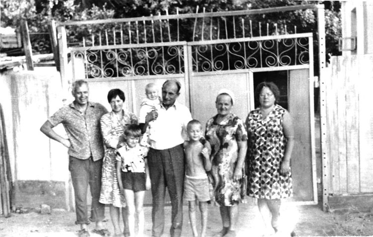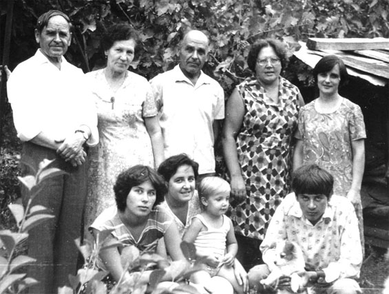 На фотографии – в верхнем ряду дядя Серёжа с женой Антониной и дядя Петя (братья Бати – отца Виктора), я (Ираида) и Наташа – младшая дочка дяди Пети.
