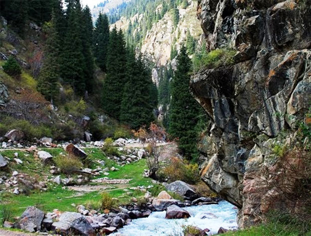 Кончилось предгорье и сразу стало темнее. Долго выбирали место для обеда. И, наконец, нашли. В сторону от основной дороги уходила протоптанная автомобилями тропа, которая петляла вдоль такой же петлистой речки – мелкой, но чистой и быстрой, как в песне – "По камушкам, по камушкам…"
