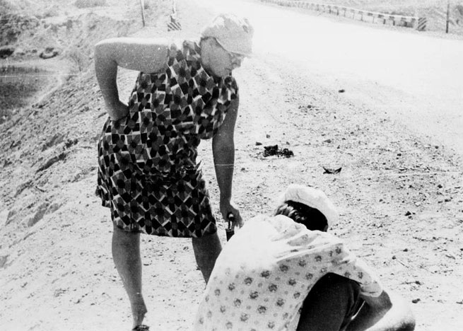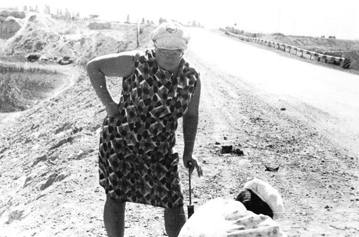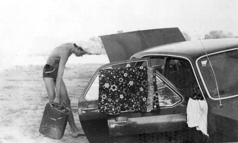 Пока монтировали колесо, мама с Элей легли под кюветом, позагорали, из ручейка поливались водичкой. Когда папа, окончив работу, умывался из этого ручейка, у него между рук проплыла змея.