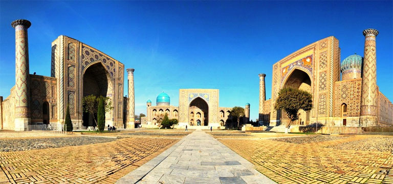 Регистан в Самарканде – один из выдающихся образцов градостроительного искусства Средней Азии, сложившийся в XVII веке и состоящий из трех медресе – Улугбека (1417–1420 гг.), Шер-Дор (1619–1636 гг.) и Тилля-Кари (1647–1660 гг.).