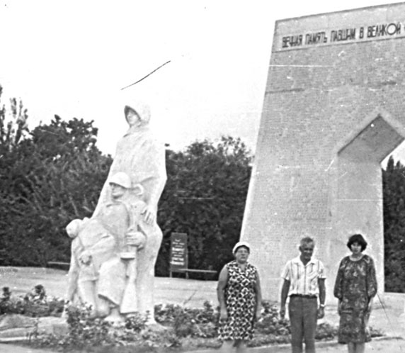Нас встречал памятник погибшим солдатам в Великой отечественной войне.