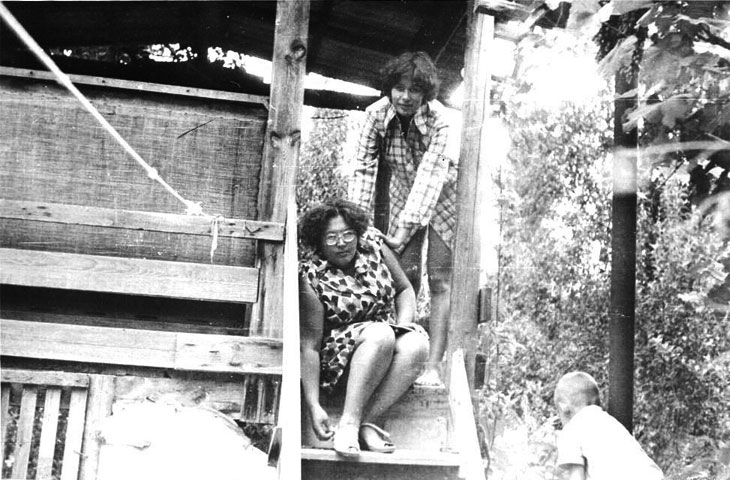 В саду стоит – я не знаю, как называется это сооружение, ну в общем, как веранда на возвышении – на высоких ногах с лестницей. Мама рассказывала, что в прошлый приезд на этой веранде принимали гостей. Стелили подушки, ковёр и по обычаю ели сидя.