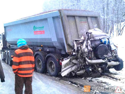 Машины выстроившись в нескончаемый ряд, на участках между населенными пунктами, набирали приличные скорости. И вот, когда до Калуги было уже недалеко, огромный Маз, за которым ехали Серёжа с Володей, неожиданно резко затормозил "по нулям". Машина наших не успела предпринять ничего, и полностью въехала под Маз, превратившись в блин.