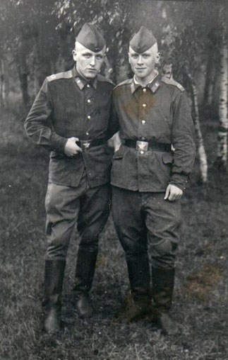 Я пришлю фото, где снялся с командиром роты для стенгазеты. Это на ученьях было, в декабре, а я фото с неё вырезал, пришлю вам.
