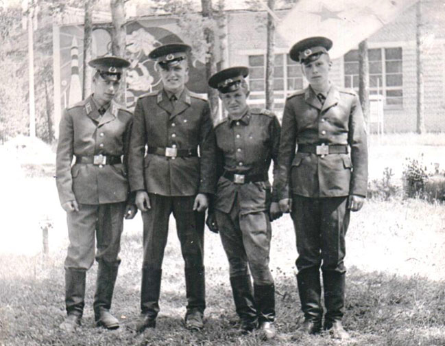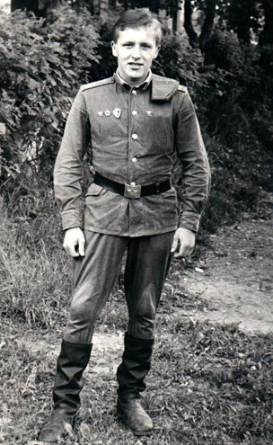 Тут я стал спорщиком. У нас тут спартакиада была, и я учувствовал в стрельбе, прыжках в длину, и плавании. Оказывается, я хорошо стреляю, и притом, вчера был день авиации. И у нас был парад. А после, перед строем комбат зачитал мне благодарность. Некоторым даже увольнение или отпуск. Но, они, кто 1 год, кто 9 месяцев прослужили. Вот, я даже не ожидал. Зачитали мою фамилию. Я вышел из строя, покраснел. А кореша смотрят, за что, мол, так меня. Так, что я, видишь, отличился в спорте.