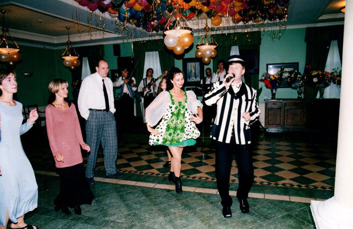 Тамада объявил небольшой концерт. В их номерах было много шуток, вызывающий у всех смех.