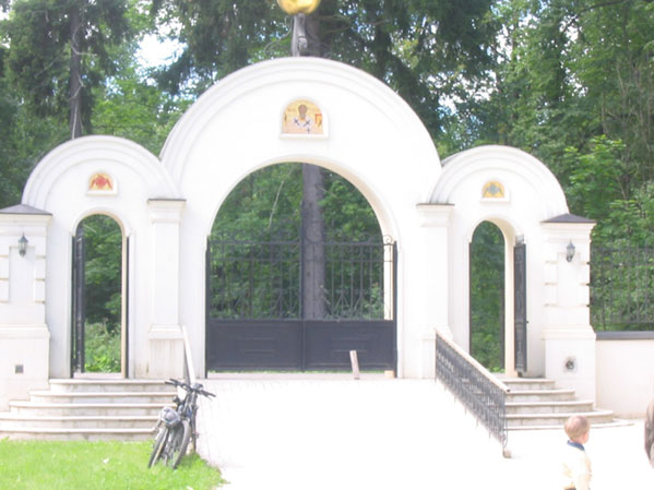 Входные ворота в Николо-Прозоровскую церковь с нашей стороны, если проезжать по дороге от Подольнихи в Марфино. Центральные ворота находятся со стороны села Марфино.