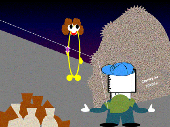 – А-а-а! – облегчённо вздыхает Нолик, придерживая верёвку и осторожно ступая за Сантиметриком.