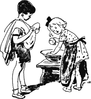 – Теперь и ты надень передник! – потребовала она. Ничего не поделаешь, пришлось и Жене устроить себе что-то вроде передника из кухонного полотенца. И это опять было правильно, потому что при мытье было много брызг.