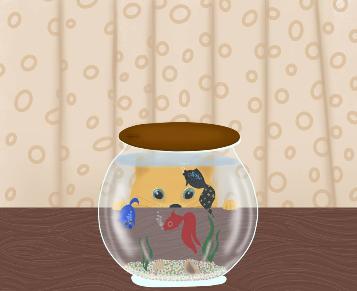 Вскоре вернулась хозяйка и привезла что-то очень интересное, малышка начала прыгать от радости. На этот новый стол поставили прозрачный сосуд с водой. На дне лежали разноцветные камешки, ракушки и торчали зеленые несъедобные водоросли. Малышка вылила в него воду из большого стакана и запустила трёх рыбок. Одна была красной с длинным хвостом, вторая – синей, а третья – черной с золотыми пятнами на хвостике и перламутровой спинкой. Мои глаза заблестели, хвост завилял, любопытству не было предела. Я прыгнул на стол и подошёл поближе, чтобы все подробненько разглядеть.