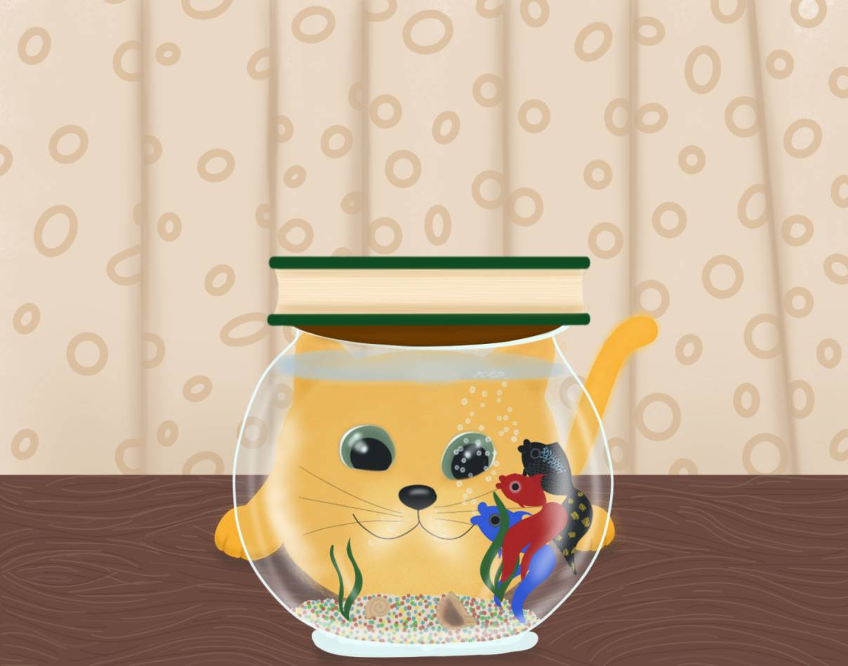 «Как же так? Я был уверен, что справлюсь с преградой и никто мне не помешает», – разочарованно думал я, подходя опять к столу. Я ходил вокруг аквариума то в одну сторону, то в другую, периодически заглядывая в него. Вскоре мне это наскучило, и я запрыгнул на книгу. Усевшись поудобнее, я задрал правую заднюю лапу, чтобы почесать себе за ухом, как вдруг, книжка начала ёрзать подо мной. От испуга я подпрыгнул, отталкиваясь от неё лапами с такой силой, что книга улетела на пол.