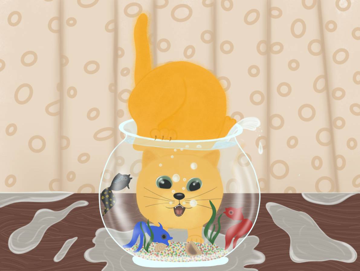 И тут началось самое интересное. Я приступил к поимке этих бездельников. То правой, то левой лапой я пытался поймать хоть одного «пискарика», но они были юркими и неуловимыми, тогда я решил прибегнуть к крайним мерам и залез туда всеми лапами, не смотря на отвращение к всяческим водным процедурам. Вода хлынула через край прямо на стол. Пока я был увлечен игрой в догонялки, совсем не обратил внимания на то, что большая часть воды из аквариума исчезла. Я весь промок «до нитки». Понимая, что мне надерут мой пушистый и на данный момент мокрый зад, я потихонечку вылез и поспешил устранить с себя следы преступления. Вылизывался я так долго, что мой язык практически онемел и ничего не чувствовал. Свернувшись в клубочек возле камина на шкурке, я заснул.