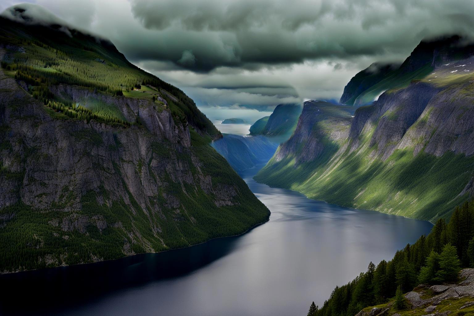 На закате корабль вошёл в длинный, узкий, извилистый залив, который с двух сторон сдавливали суровые серые скалы, кое-где покрытые хвойным лесом. Этот залив, как узнала Торей, называется фьорд. Над фьордом висели низкие тяжёлые облака, сквозь которые с трудом пробивались солнечные лучи.