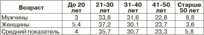 Возрастной состав был распределён по пяти категориям, его процентное соотношение приведено в таблице 2.