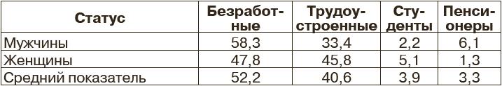 Соискатели, обратившиеся в кадровое агентство с целью поиска или смены работы, были разделены по социальному статусу на безработных, трудоустроенных, студентов и пенсионеров. В результате мы получили следующее распределение (таблица 3).