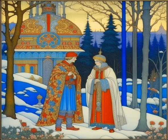 – Что, Василисушка, добралась до высоких гор?! Не тужи, не печалься, я тебя сейчас одним прыжком через горы перенесу! Садись на мою широкую спину, да покрепче держись!