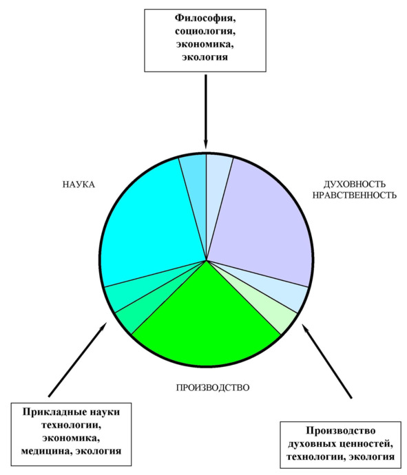 Примечание Проводника 2005 год. Заметим, что в понятие общечеловеческая культура входят, как нераздельное и неслиянное целое, три огромные компоненты, которые подлежат рассмотрению и развитию в ходе исторической деятельности человеческой цивилизации, и отражают в себе все три компоненты самой человеческой сущности – духа, души и тела. И поскольку, чтобы ни творил человек, он весь, в целом участвует в этом, то и происходит прямое или опосредованное вложение результатов его труда во все три компоненты общечеловеческой культуры.
