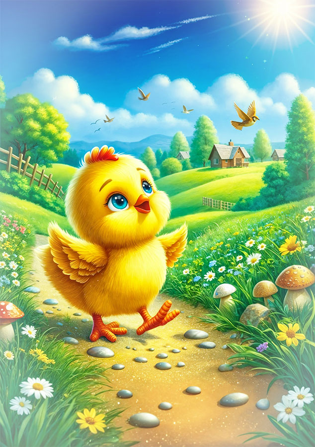 Один маленький цыплёнок убежал из дома. Он был очень любопытным: хотел повидать мир и узнать много интересного.