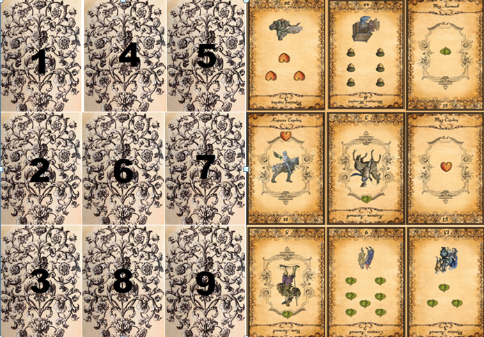 А где же муж и каковы его цели относительно продажи квартиры? Посмотрим его мысли, сделав расклад: три ряда по три карты.