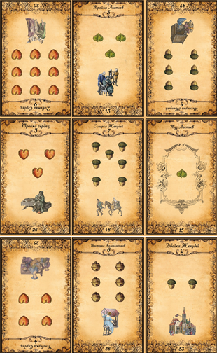 Шестерка Желудей – радость от коротких встреч и общения, прибыли и умение найти прибыльные дела и связи. Богемный образ жизни, высокомерие, презрение к бедным и слабым.
