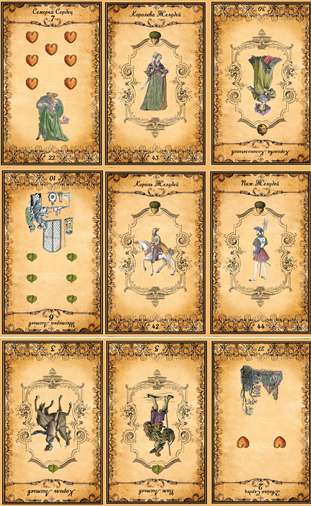 Паж Сердец – ребенок Короля и Королевы Сердец. Ухаживания, слова любви и признательности, таланты в искусстве, искренность в отношениях. Лживость, распущенность, коварство, измены.