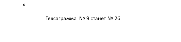 9. Построив исходную гексаграмму – Бэньгуа, конечную – Чжигуа (если есть подвижные черты), мы строим среднюю – Хугуа.