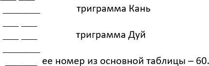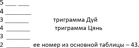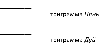 Мы получили нижнюю триграмму и записали ее снизу вверх:
